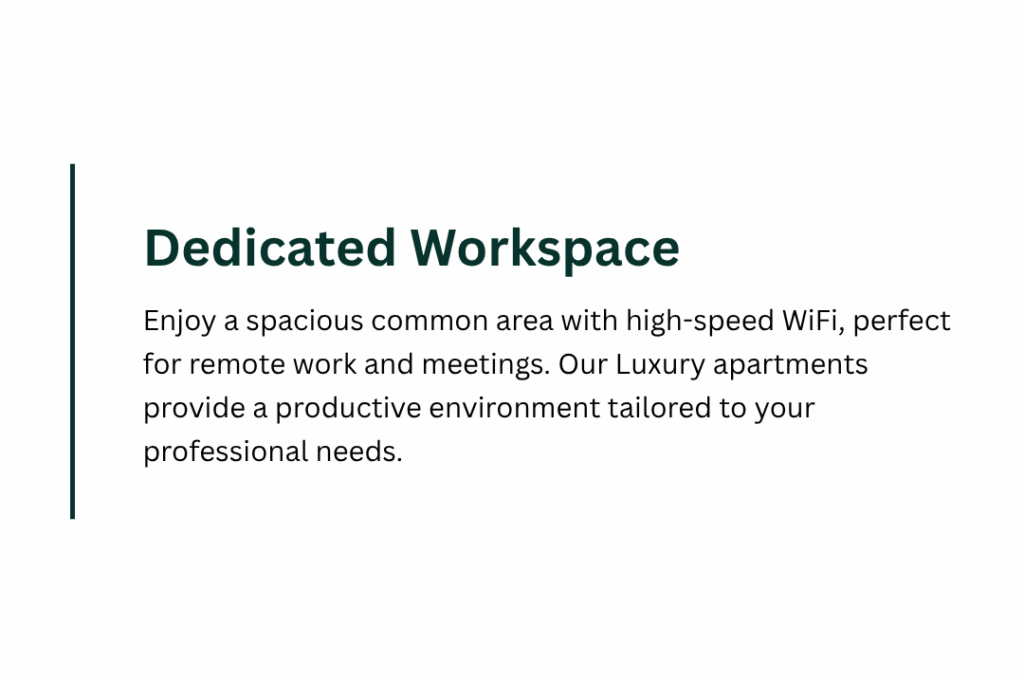Your peace of mind is priceless. Look for apartments in well lit areas that have a reputation for being safe. Many modern buildings offer 24/7 security, secure parking, and other safety features. Reading recent reviews from other guests can also give you a good idea of how safe the neighborhood feels.